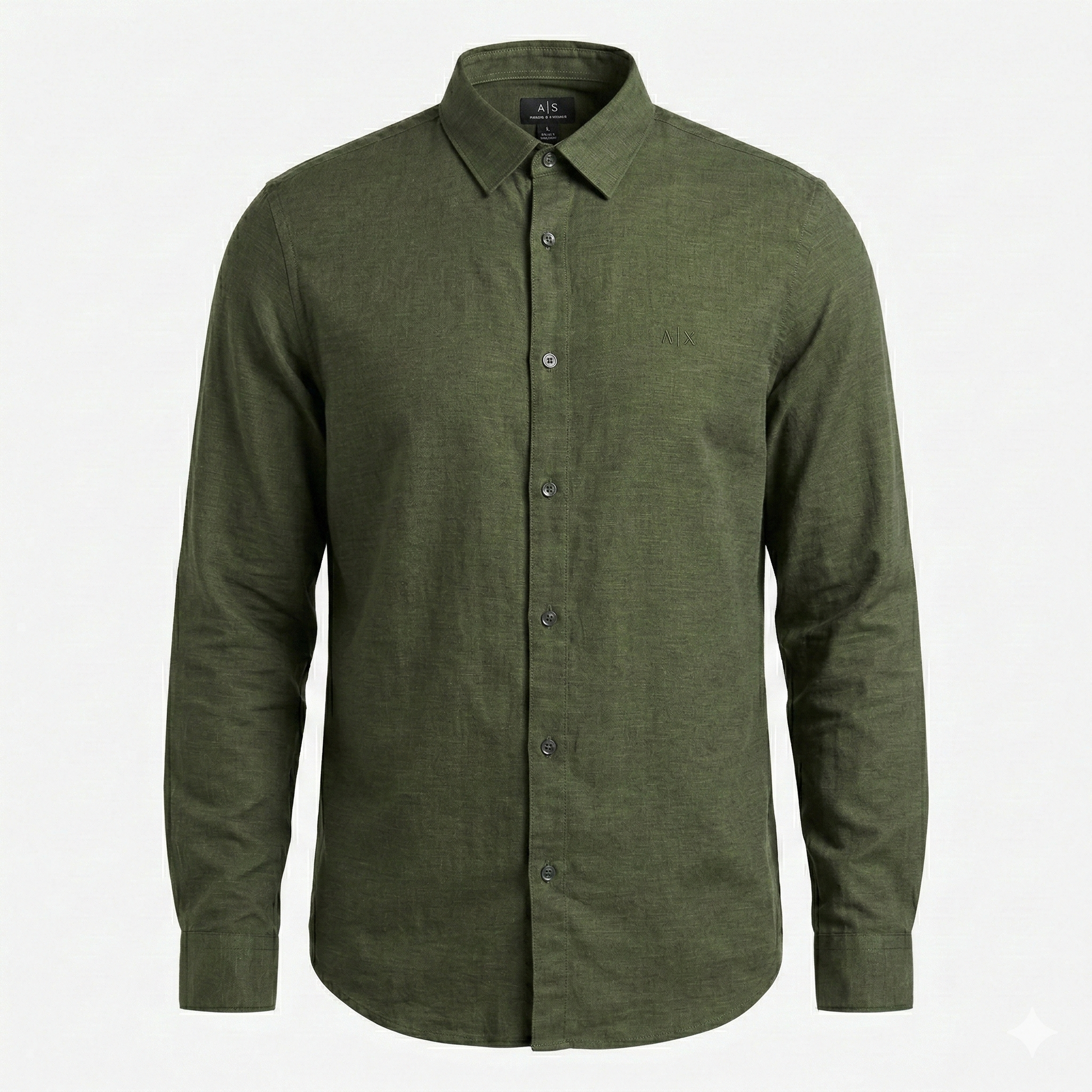 A|X Verdant Sage Tailored Fit Long Sleeve Linen-Blend Shirt