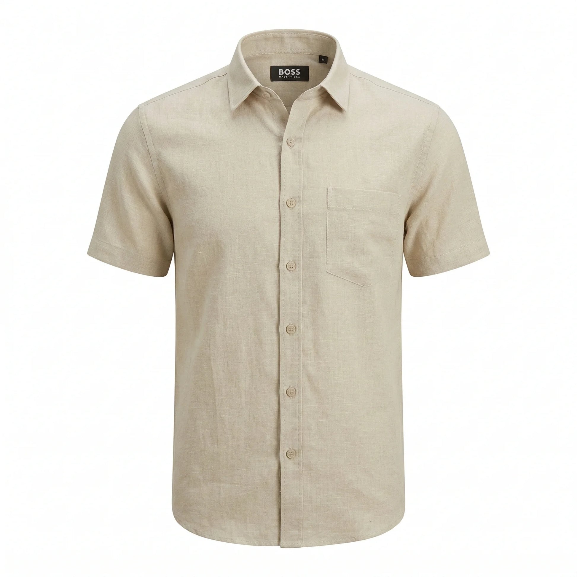 BOSS Warm Sand Effortless Fit Short Sleeve Linen Shirt