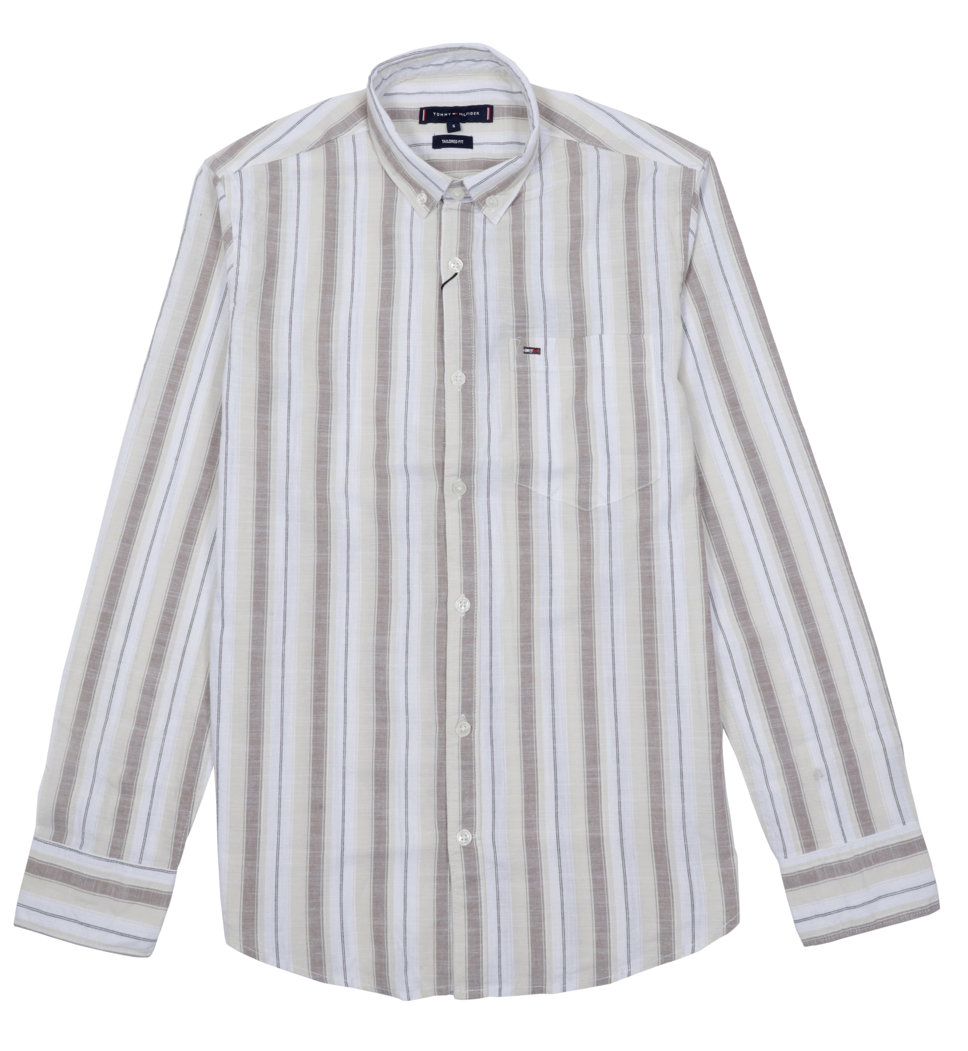 TOMMY HILFIGER Sandstone Cream Tailored Fit Long Sleeve Striped Shirt